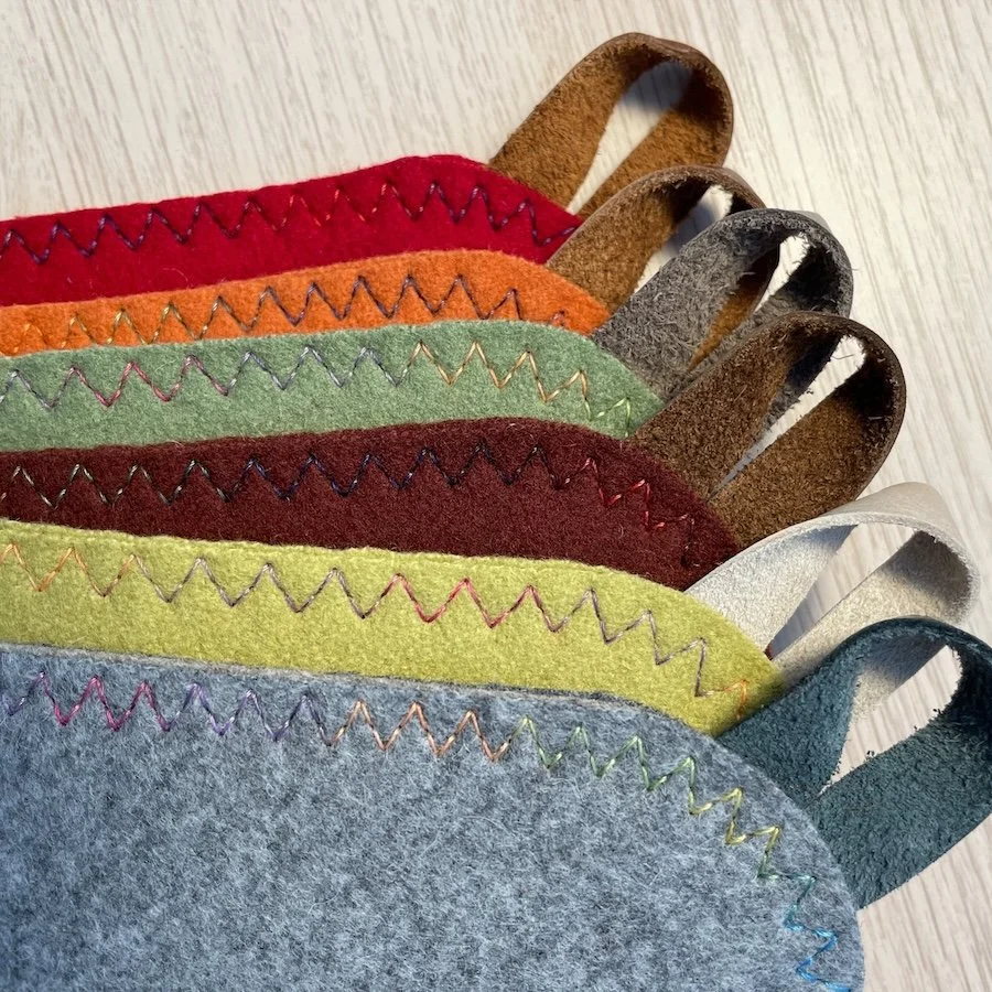 Finished in our signature stitch that surprises each solid hue with a continuous rainbow thread, we think the result is a success. The wool felt lining made in the American Midwest, adds a touch of sturdy to the flexible hand, for those who love a balance of soft confidence when in use.